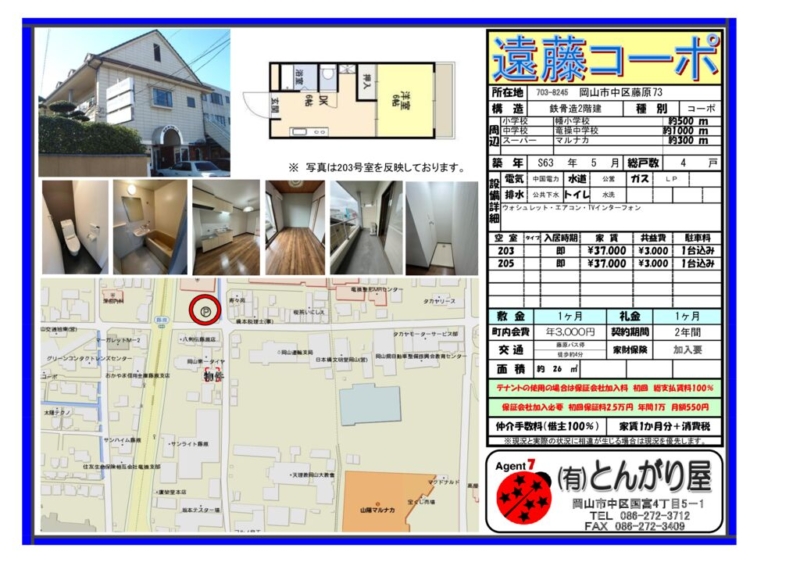 とんがり屋 〒703-8236 岡山県岡山市中区国富4丁目5-1 駐車場:あり TEL:086-272-3712 FAX:086-272-3409